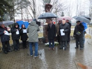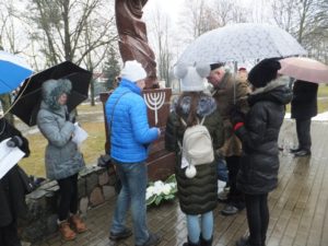 Исполнительный директор Еврейской общины (литваков) Литвы Ренальдас Вайсбродас, принявший участие в этом мероприятии, сказал, что “в этот день мы вспоминаем всех литовских евреев, которые были замучены, расстреляны в городах и городках Литвы. Лишь немногим удалось выжить, пройдя все ужасы войны – концлагеря и гетто. Более 600 тысяч евреев сражались с нацистской Германией. Многие из них погибли или вернулись с поля боя инвалидами. Нам важно сохранить память о Холокосте, память о погибших”.