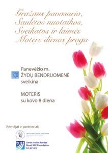 Еврейская община Паневежиса поздравляет женщин с Днем 8 марта! 2018-03-07 Желаем вам крепкого здоровья, счастья и солнечного настроения! ← Подарок посольства Израиля: концерт израильских джазовых музыкантов в Паневежисе Соболезнование →