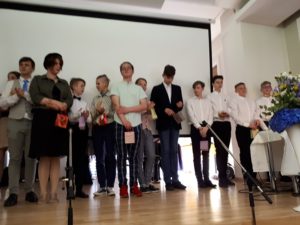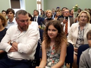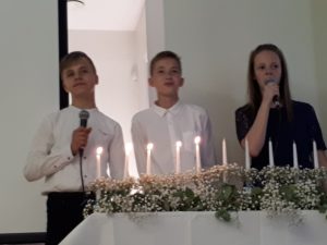 Директор гимназии Миша Якобас, поздравляя ребят с таким важным событием в их жизни, вспомнил свою бар-мицву, которая состоялась 55 лет назад в Тельшяй, вспомнил своих родителей, праздничный стол со скромным угощением и самый дорогой подарок – часы, которые идут до сих пор.