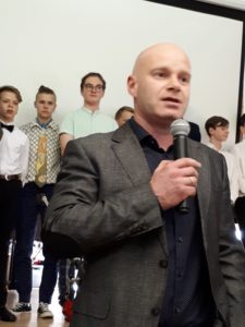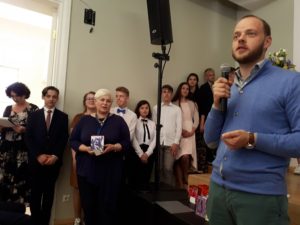 Исполнительный директор Еврейской общины Литвы Ренальдас Вайсбродас вручил гимназистам подарки от общины.