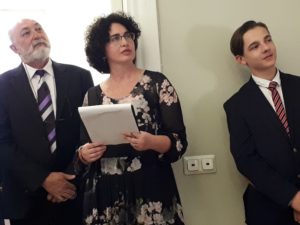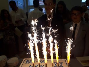 Директор гимназии Миша Якобас, поздравляя ребят с таким важным событием в их жизни, вспомнил свою бар-мицву, которая состоялась 55 лет назад в Тельшяй, вспомнил своих родителей, праздничный стол со скромным угощением и самый дорогой подарок – часы, которые идут до сих пор.