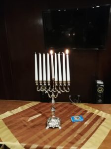 Еврейская община Шяуляйского уезда поздравляет всех с Ханукой! В минувшее воскресенье община зажгла первую свечу и собралась за праздничным столом с традиционными ханукальными угощениями: латкес (картофельные оладьи) и пончики, которые приготовили женщины общины. Веселой и светлой Хануки!