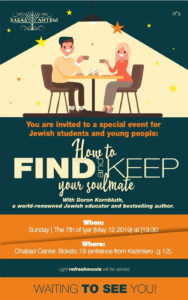 Вниманию студентов и молодежи! Приглашаем принять участие в интересной встрече! 2019-05-072019-05-09 ← История подвига японского дипломата, спасшего тысячи евреев В Израиле проходят мероприятия Дня Памяти солдат, павших в войнах, и жертв террора →
