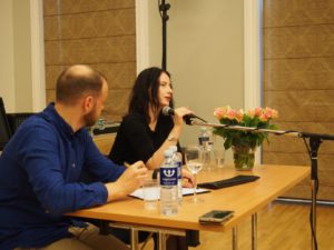 На встрече Агне ответила на вопросы собравшихся и ведущего вечер, поделилась историей своей семьи.
