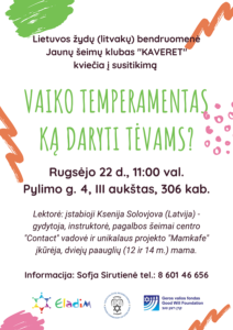 Еврейская община (литваков) Литвы, клуб молодых семей «Каверет» приглашает вас на встречу «Темперамент ребенка. Что делать родителям?»