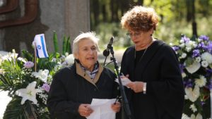 О том, чтобы одна из самых страшных трагедий ХХ века больше никогда не повторилась говорила бывшая узница Вильнюсского гетто, участница вооруженного сопротивления нацистам Фаня Бранцовская. Ее речь с идиша на литовский переводила председатель Еврейской общины Литвы Фаина Куклянски. Глава общины обратилась к собравшимся: «Кто изолировал евреев? Кто призывал жителей Литвы избавляться от евреев? Кто убивал евреев? Несмотря на то, что уже прошло 78 лет, эти вопросы до сих пор вызывают глубокую боль».
