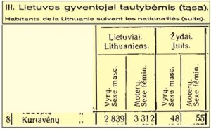 Признаемся честно, газетная информация об отсутствии в Куртувенай евреев нас удивила, и мы стали «рыть» интернет. Вышли на данные переписи жителей Литвы 1923-го года (1923 m. rugsėjo 17 d. gyventojų surašymo duomenys)