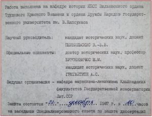 никакой другой диссертации профессор Гумуляускас не защищал!