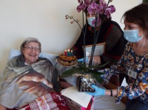 Еврейская община (литваков) Литвы по случаю юбилея Этты планировала организовать концерт ансамбля «Файерлах» для всех подопечных пансионата. К сожалению, режим карантина внес изменения в наши планы. Нам позволили лишь передать Этте цветок и поздравление.