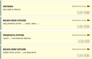с комментарием «lauk zydai is lietuvos» (вон, евреи, из Литвы) согласны еще 47 человек.