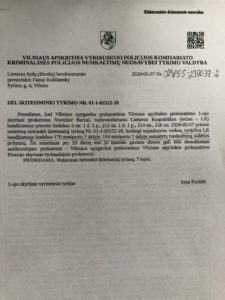 В решении прокуратуры о прекращении расследования сказано: « <…> не установлено, что автор, используя какие-либо конкретные слова, издевался, унижал, разжигал ненависть или вражду в отношении группы людей по национальному происхождению. Эксперт (специалист), выполнивший анализ статьи, в представленном выводе отметил: несмотря на то, что в тексте преобладает распространение довольно спорного взгляда на некоторые исторические, политические и общественные явления Литвы, но явных призывов к актам вообще не найдено».