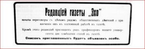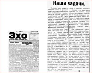 Первый номер газеты «Эхо» и её редакционная статья.