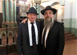 На фото: Симас Левин и раввин Шолом-Бер Крински