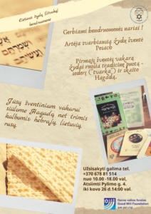 Дорогие друзья, приближается один из важнейших еврейских праздников – Песах. В первый день праздника во время торжественного ужина – Седера, читают историю Исхода евреев из Египта – Хагаду. Предлагаем вам приобрести Хагаду сразу на трех языках – на русском, литовском языках и на иврите. Заказать в Вильнюсе по тел.: +370 678 81 514, с 10 – 18. Получить заказ можно до 26 марта, 14.00 – ул. Пилимо, 4