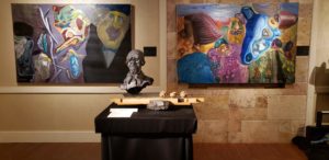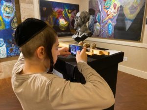 Большинство выставленных произведений относятся к хасидской жизни или библейским темам. Это включает серию Глаубера «Скрипач на крыше» из бронзы, в которой главный герой знаменитого мюзикла на идиш адаптирован к современности. Светящийся триптих Розы Катценельсон, хасидской художницы – новатора, представляет собой интерпретацию библейского перехода через Красное море. «Ван Гог рисовал цветы, Шагал рисовал призраков, но современные художники рисуют духовность», – поэтично воскликнул раввин Вайнштейн. «Каждый художник находится под влиянием своего окружения, и современные художники не отличаются друг от друга, они взаимодействуют друг с другом и изображают Тору через искусство».
