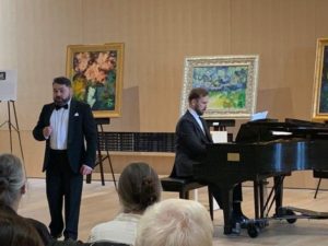В рамках мероприятия состоялось виртуальное открытие выставки в музее-архиве литовцев Канады, а также выступление известного дуэта – оперного солиста Рафаиласа Карписа и пианиста Дарюса Мажинтаса.
