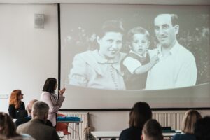 В первый день семинара работников образования посетила посол Израиля в Литве Хадас Виттенберг-Сильверстейн. Она поделилась историей своих бабушки и дедушки, которая напрямую связана с Холокостом, и показала «Листы свидетельских показаний» – это специальные анкеты, созданные в Яд Вашем для восстановления личностей и регистрации кратких жизненных историй шести миллионов евреев, убитых нацистами и их пособниками. Эти анкеты в память об убитых в годы Холокоста евреях заполняют выжившие родственники, друзья или знакомые. «Листы свидетельских показаний» были заполнены ее бабушкой и дедушкой, которые свидетельствовали в этих документах об убитых членах своей семьи.