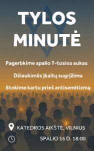 16 октября, в четверг, на столичной Кафедральной площади, состоится митинг «Минута молчания». Он посвящен памяти израильтян погибших от рук террористов 7 октября. Также будет почтена память и евреев, которые были убиты в последние годы в США и Европе в результате антисемитских терактов.
