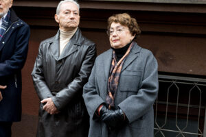 В церемонии открытия памятной доски приняли участие почетные гости: заместитель посла Государства Израиль в Литве Шимон Песах и председатель Еврейской общины Литвы Фаина Куклянски.