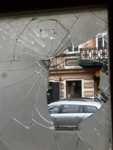Он поделился фотографиями, на которых видно разбито окно, и призвал общество не молчать.