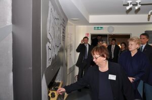 На фото: Дануте Сельчинская представляет выставку экс-президенту Литвы Дале Грибаускайте