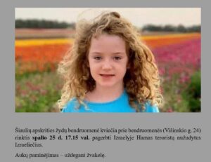 Еврейская община Шяуляйского уезда призывает поддержать Израиль и почтить память израильтян, убитых террористами ХАМАСа.