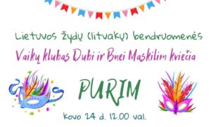Еврейская община (литваков) Литвы приглашает членов общины на веселый праздник Пурим: в воскресенье в общине пройдут праздничные мероприятия и для детей, и для взрослых.