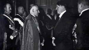 Во-вторых, в унижении Германии после Первой мировой виноваты были, главным образом, мы сами и наше правительство. В конце лета 1918 стало окончательно ясно, что Германии не избежать поражения, что противник слишком силен. За поражение кто-то должен был ответить, и виновные были найдены. Чтобы выгородить себя, военное руководство прибегло к легенде об ударе ножом в спину: Германия не проиграла на поле боя, ее сломили внутренние враги: левые, евреи и голод. Возникла устойчивая тенденция говорить о себе как о жертве и возлагать вину на кого-то. Убежденность в том, что Германия пала жертвой чьих-то злых козней была не только сильна, но и общепринята, она охватила все общество. Но страны-победительницы НЕ ХОТЕЛИ унижения Германии, они не пошли на оккупацию. Скорее всего, это была ошибка.
